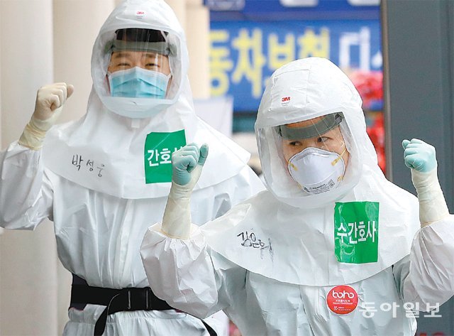 ‘코로나19’와 사투를 벌여야 했던 올 한 해. 현장을 지킨 의료진의 헌신은 큰 힘이 됐다. 4월 대구 계명대 대구동산병원에서 코로나19 환자들을 돌본 간호사들. 동아일보DB