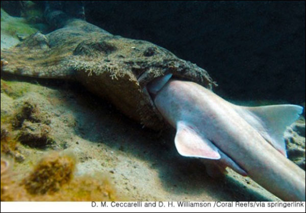 연구팀은 '상어 잡아먹는 상어'에 대해 "워베공 상어가 동족인 죽상어를 머리부터 서서히 먹기 시작했다"며 "아마도 다 먹는데 몇 시간은 걸렸을 것"이라고 밝혔다.