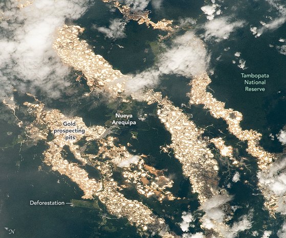 미 항공우주국(NASA)은 페루 남동부 마드레 드 디오스 주에서 불법 금 채굴로 심각하게 파괴된 아마존 열대우림의 위성사진을 7일(현지시각) 공개했다. 지난해 12월 24일 국제우주정거장(ISS)에 탑승한 우주비행사가 촬영한 사진이다.